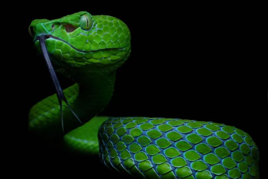 在拍蛇的过程中如果想拍到蛇吐信的场景,可以尝试轻轻向蛇吹气,部分蛇类在感知到气流变化的时候会以吐信的方式识别猎物、天敌或是环境变化,但这个动作会因蛇而异,也有部分蛇类(如响尾蛇)吐信用于配合身体姿态威慑敌人以及锁定攻击目标的方向,因此也要对蛇类行为有一定的了解,能更好的捕捉到蛇类姿态。
