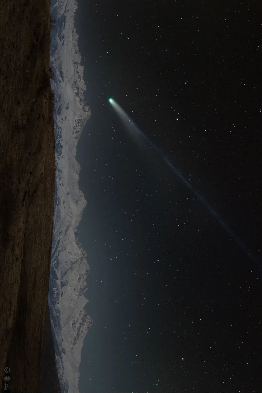 当莱蒙彗星的绿光划破夜空,雪山的轮廓在暗夜里格外清晰,200mm见证了这场宇宙与大地的邂逅。