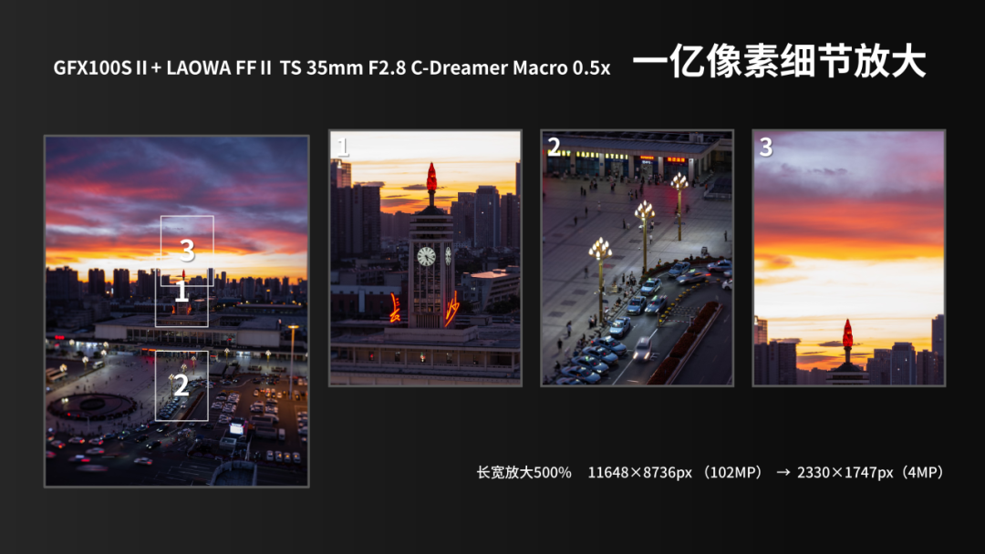 这一篇主要讲述这颗镜头在富士 GFX 100S II机身上的使用体验,探讨它在中画幅上的应用优势,比如在一亿像素输出下的画质表现、移轴接片以及“小人国”题材的拍摄。