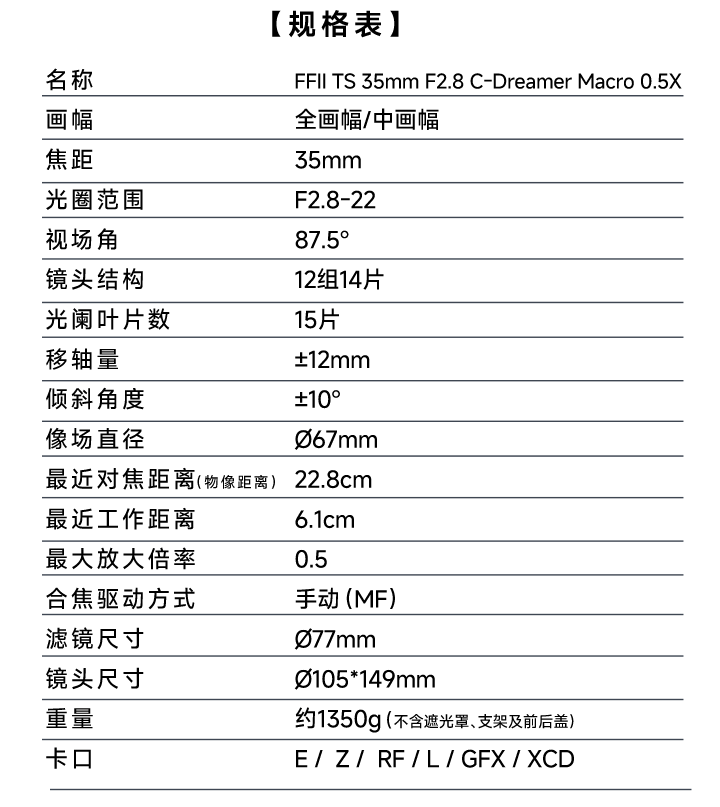 FFll TS 35mm F2.8 C-Dreamer Macro 0.5X