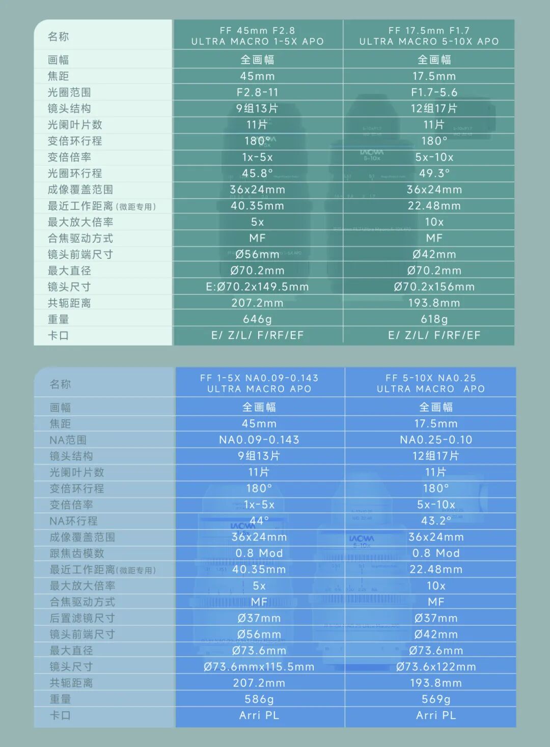 3、更长的工作距离(40.35mm/22.5mm),便于布光;