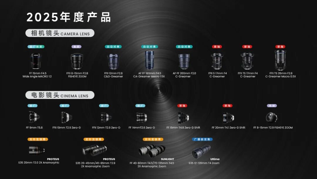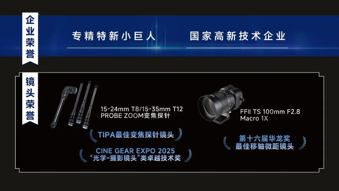 Probe Zoom镜头一举拿下 TIPA(欧洲)“最佳变焦探针镜头”,CINE GEAR EXPO 2025 TECHNICAL(欧洲)“光学 - 摄影镜头” 奖;FFⅡ TS 100mm F2.8 Macro 1:1获第十六届华龙奖 “最佳微距镜头”。
