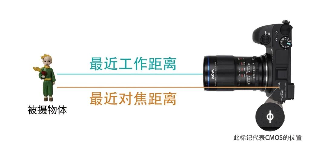 最近对焦距离(最近摄影距离):能够对被摄物体进行对焦的最短距离(被摄物体到相机CMOS的距离)