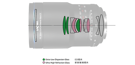 此款镜头是全画幅系统下的微距镜头,拥有着普通镜头下不具备的复消色差APO技术,可将色散有效消除,使拍摄微距题材时,不受色差色散的影响。