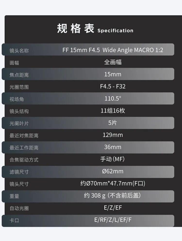 新品|15mm F4.5 Macro实现超广与微观细节覆盖