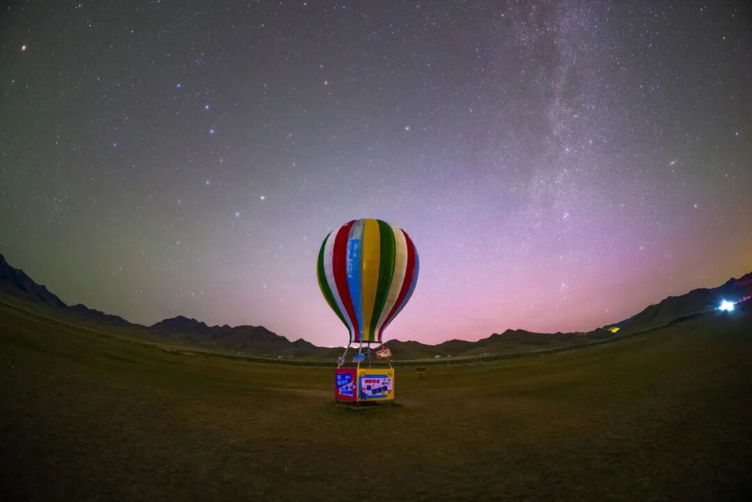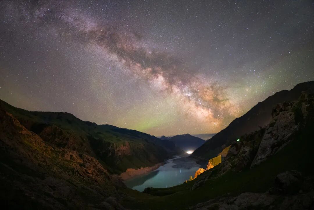 使用15mm视角,记录下赛里木湖粉红色的雾化北极光。