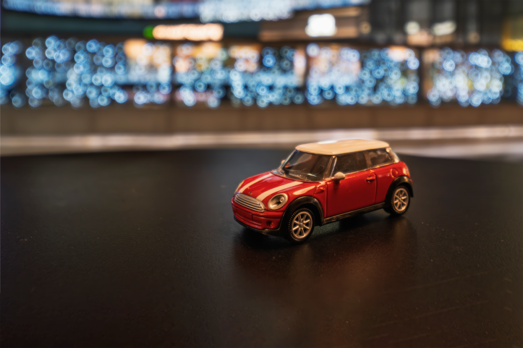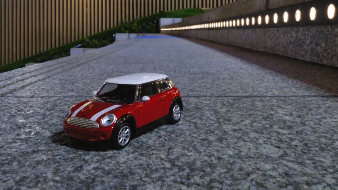 如果喜欢拍微缩模型的朋友,这支15mm F4.5超广微距镜头也是非常好的选择。这次我在户外分别拍了1:36的SUV和MINI小车,微缩模型与真实环境很融合,好像真车一样,非常有趣。