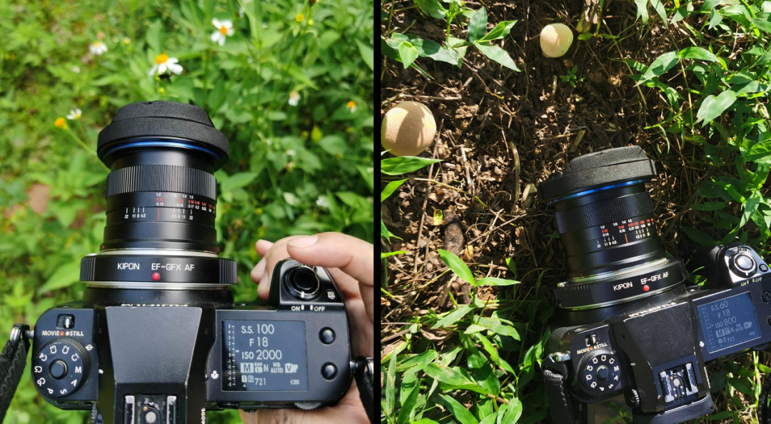这次我还使用KIPON EF - GFX AF电子转接环,把新15mm F4.5超广微距镜头转接在富士中画幅GFX100S上试用。