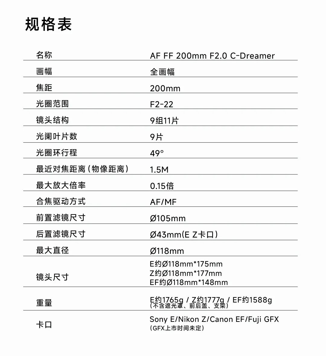 相机镜头产品线