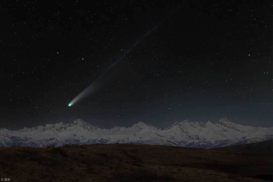 当莱蒙彗星的绿光划破夜空,雪山的轮廓在暗夜里格外清晰,200mm见证了这场宇宙与大地的邂逅。