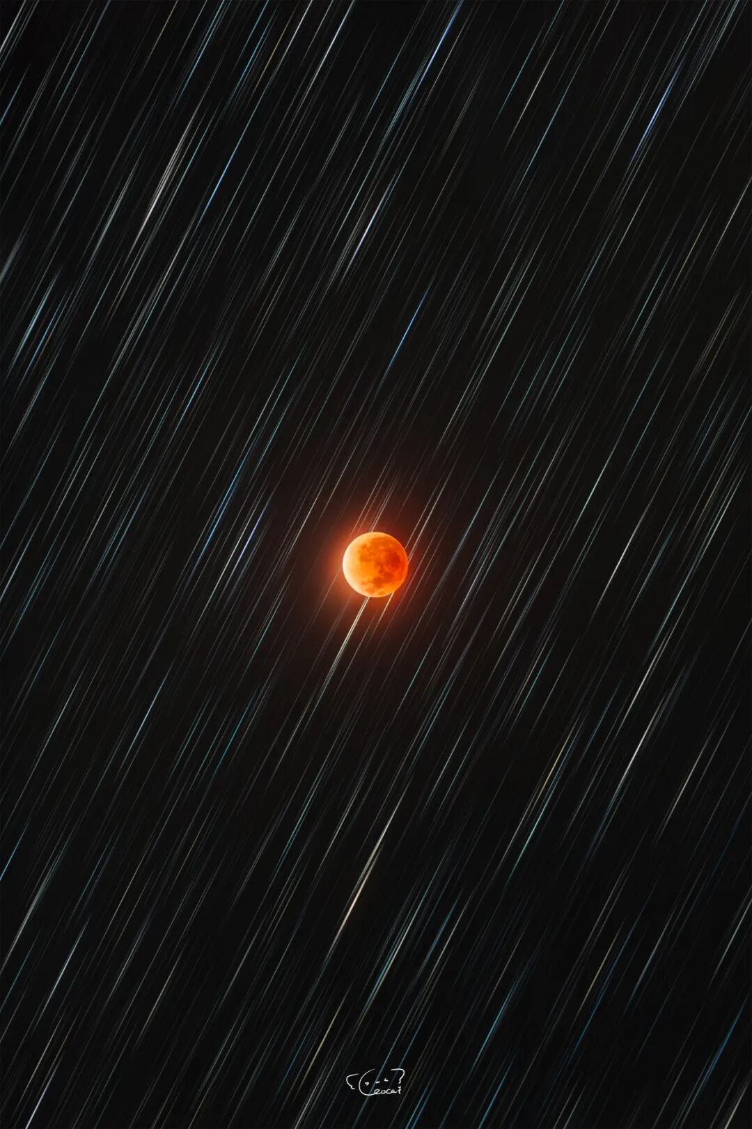 月球是地球的守护者。一颗‘静止的血月、一片‘流淌’的星空。留蚀月悬于中央,任群星逝作流光。