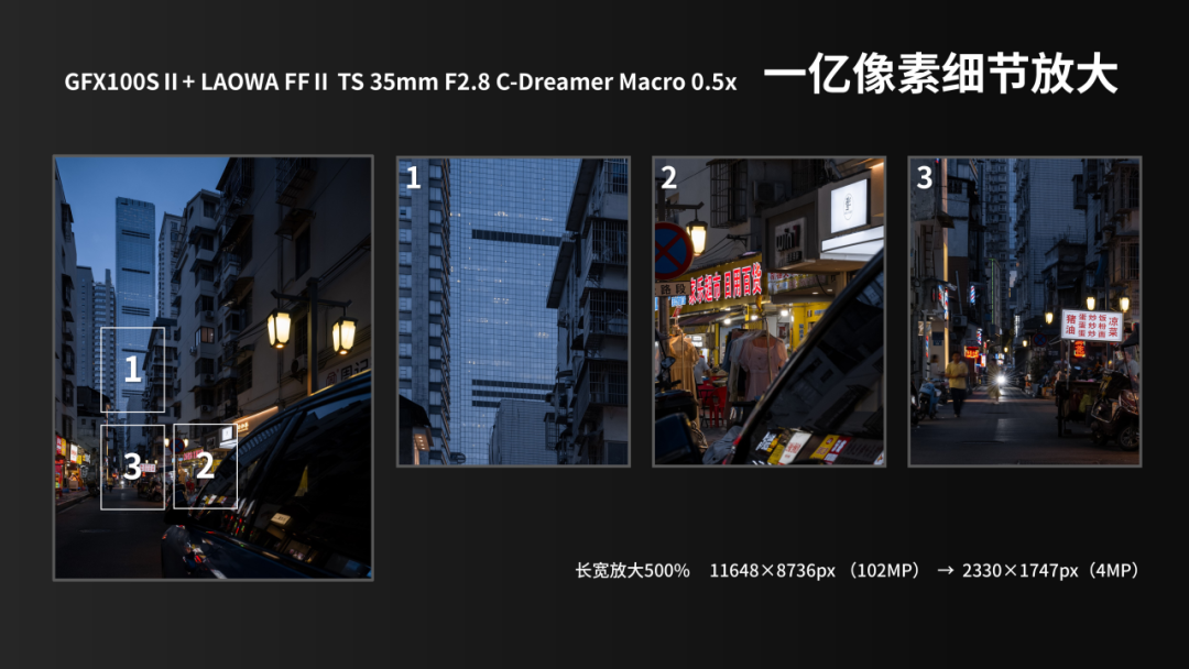 这一篇主要讲述这颗镜头在富士 GFX 100S II机身上的使用体验,探讨它在中画幅上的应用优势,比如在一亿像素输出下的画质表现、移轴接片以及“小人国”题材的拍摄。