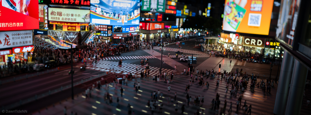 在五一广场十字路口,我利用T移轴功能营造出“小人国”的效果,并结合GFX的65:24宽幅比例,让人流、车流在画面中都变得精致而紧凑。稍微调整的倾斜,让画面带有玩具模型般的质感,充满了趣味性。