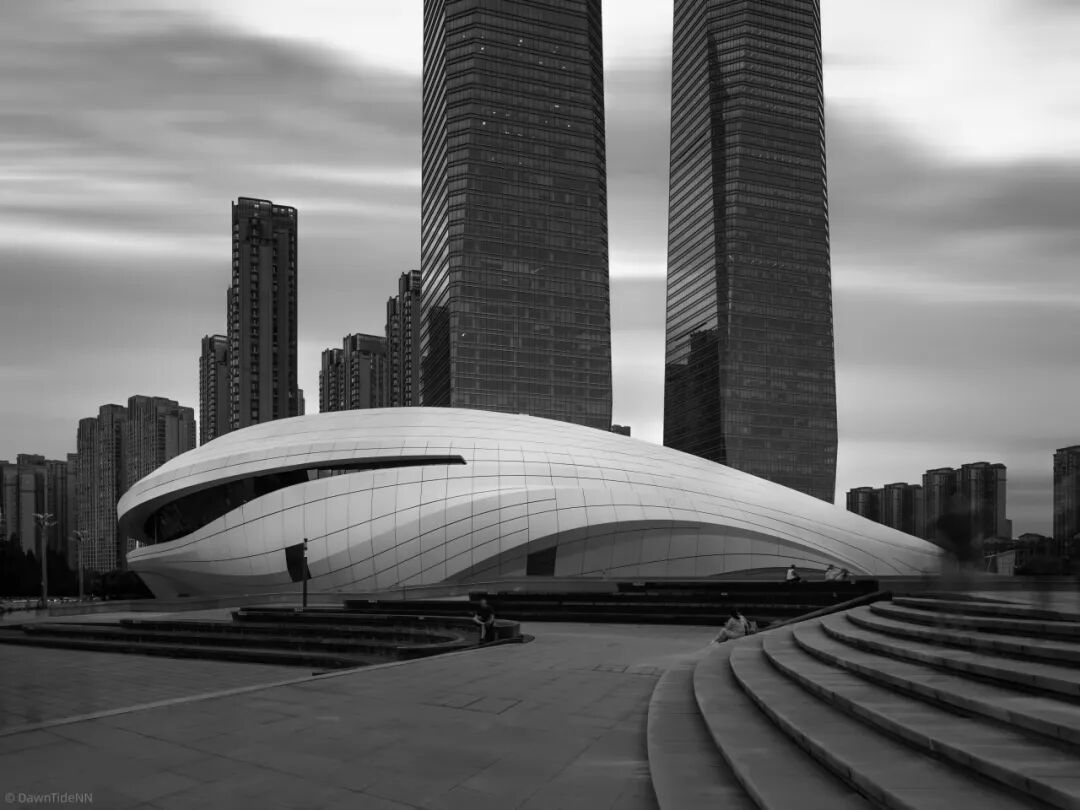 在梅溪湖艺术博物馆旁的大桥上,我使用了S方向的移轴功能,并搭配GFX的16bit RAW文件和前置ND滤镜来拍摄。