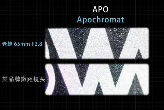 老蛙的微距镜头大多是具有2倍及以上的放大倍率,这意味着物体可以在CMOS上以其2倍甚至更大的比例呈现,这样就可以拍摄出更多的细节,和肉眼难以观察到的微观世界。因为微距镜头的这一特点,很多模型手办爱好者也会选择微距镜头来记录自己的收藏品。生活中很多有趣的画面,如果没有微距镜头,可能也永远没有机会看到。"APO"技术简单点说,就是可以有效消除绿边紫边等色差色散的技术。没有"APO"技术的微距镜头拍摄的画面可能是下面这样的,高反差部分的边缘全是紫边绿边,影响出片质量。以具有“APO”技术的老蛙65mm F2.8 2倍放大镜头为例,拍出的照片没有色散干扰。为了校正桶形畸变,高素质的超广角镜头会使用非球面镜片。与有着固定曲率的普通球面镜片不同,非球面镜片可以有各种曲率,其形状可以根据设计需要定制。